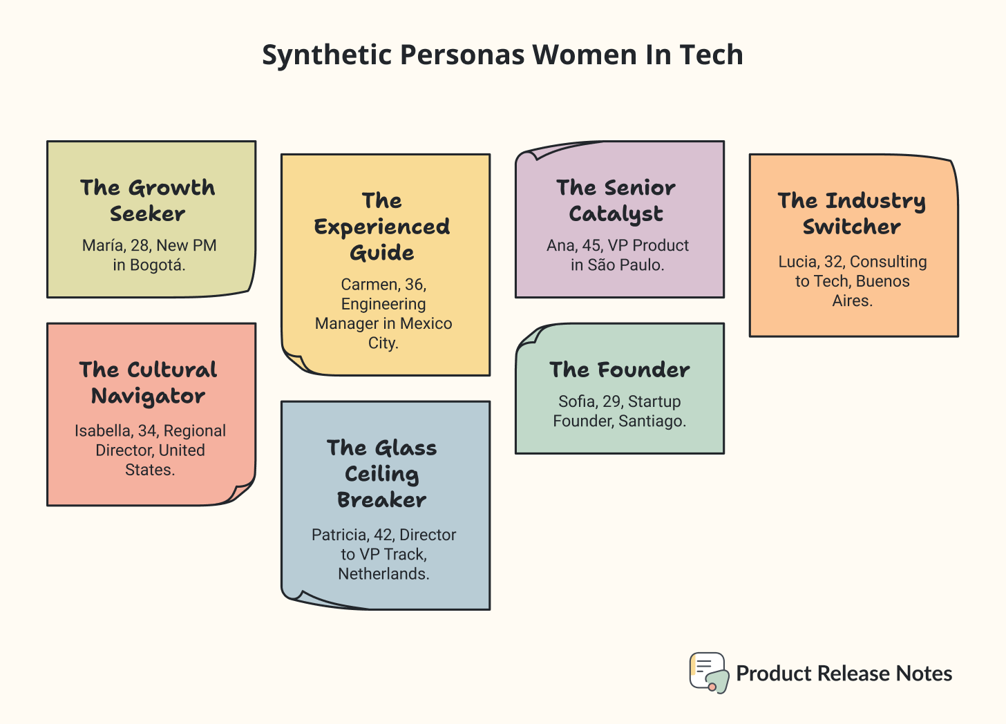 After using Perplexity’s deep research capability, I created a systematic validation framework that identified 7 distinct personas representing different types of women who might use: