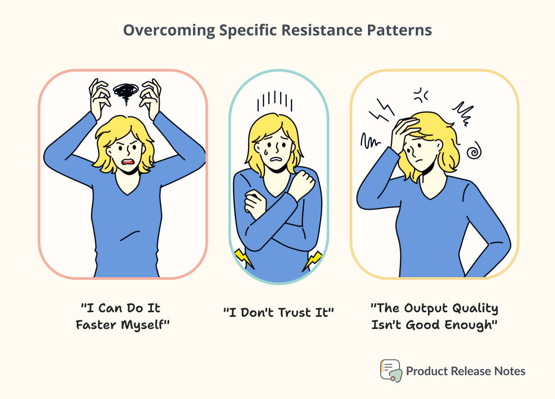 This often stems from unrealistic expectations about AI capabilities. Address it by setting appropriate expectations and showing how to use AI as a starting point rather than a final solution.