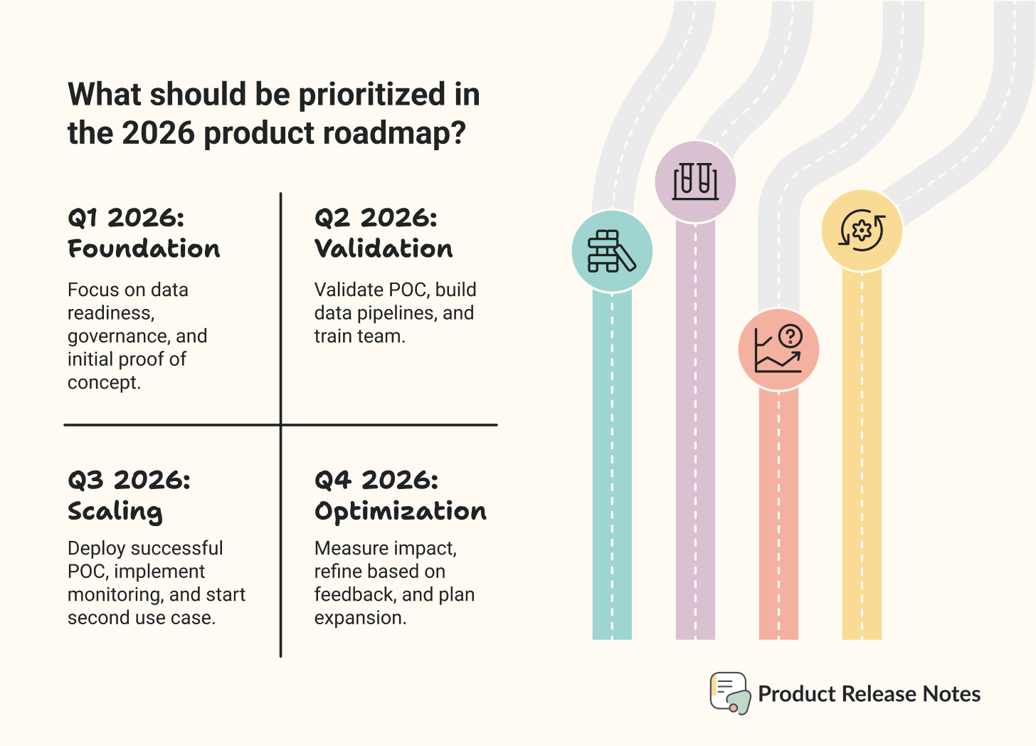 Your 2026 roadmap should balance ambition with reality. Here’s what successful product leaders are prioritizing: