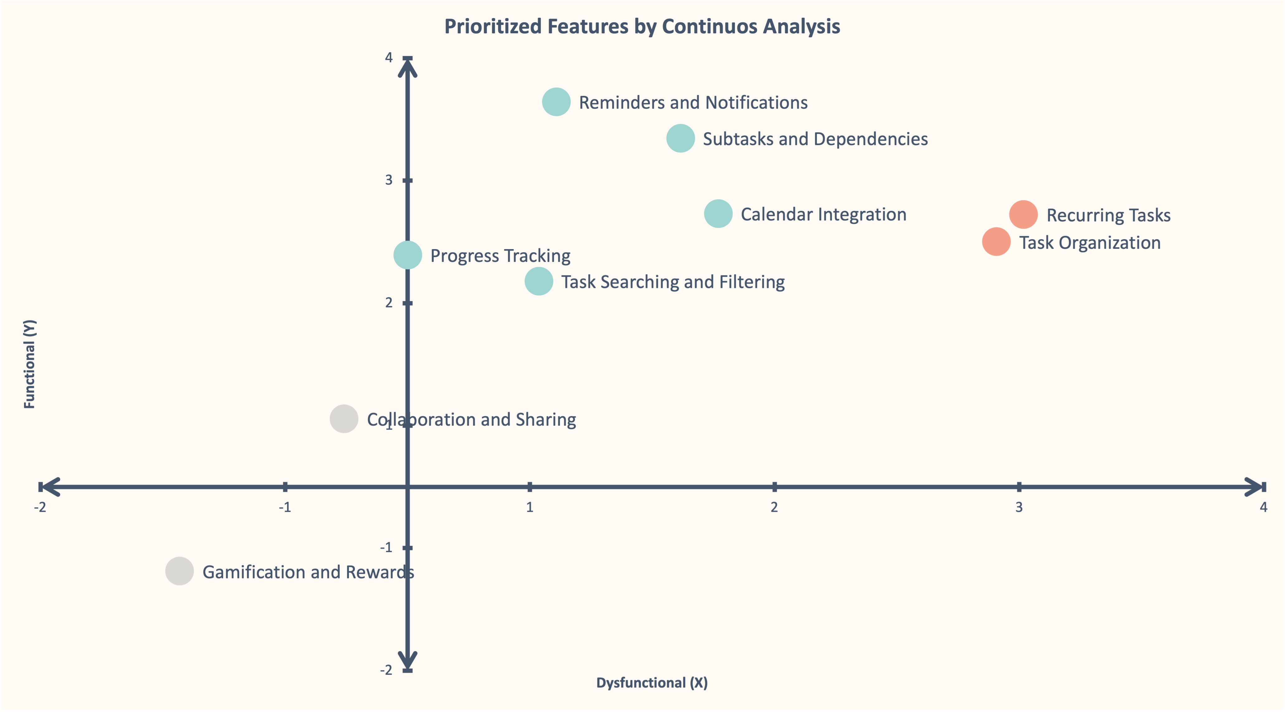So taking each Functional and Dysfunctional score we’ll help us understand in what part of the quadrant is the feature.