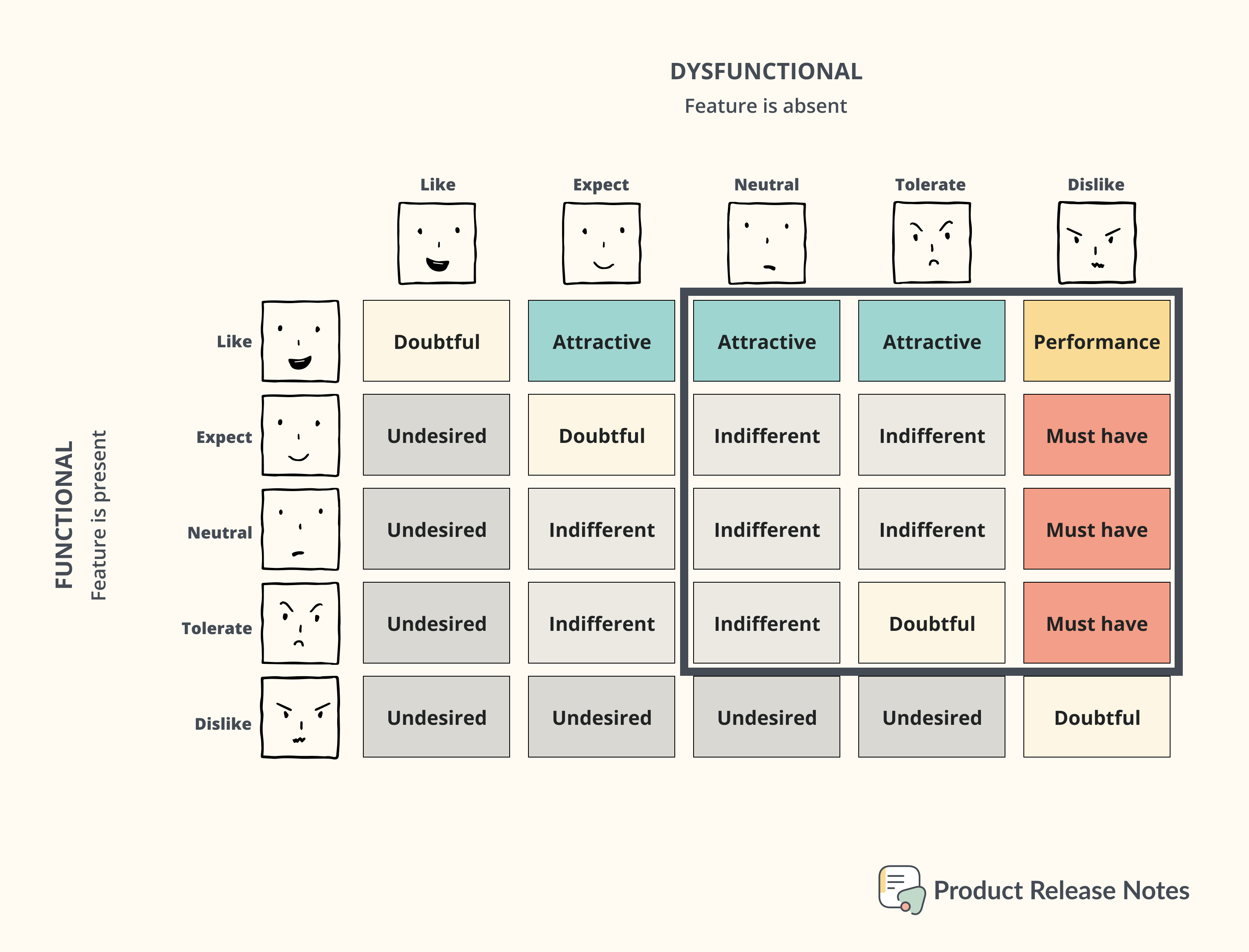 Indifferent: These features are not interesting. Users don’t love neither dislike them, they just don’t care and feel neutral about their existence.