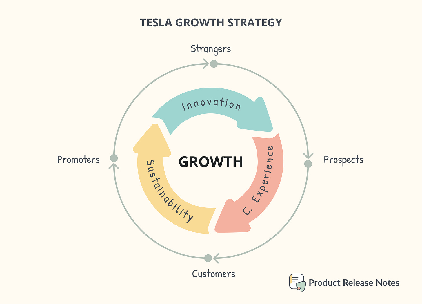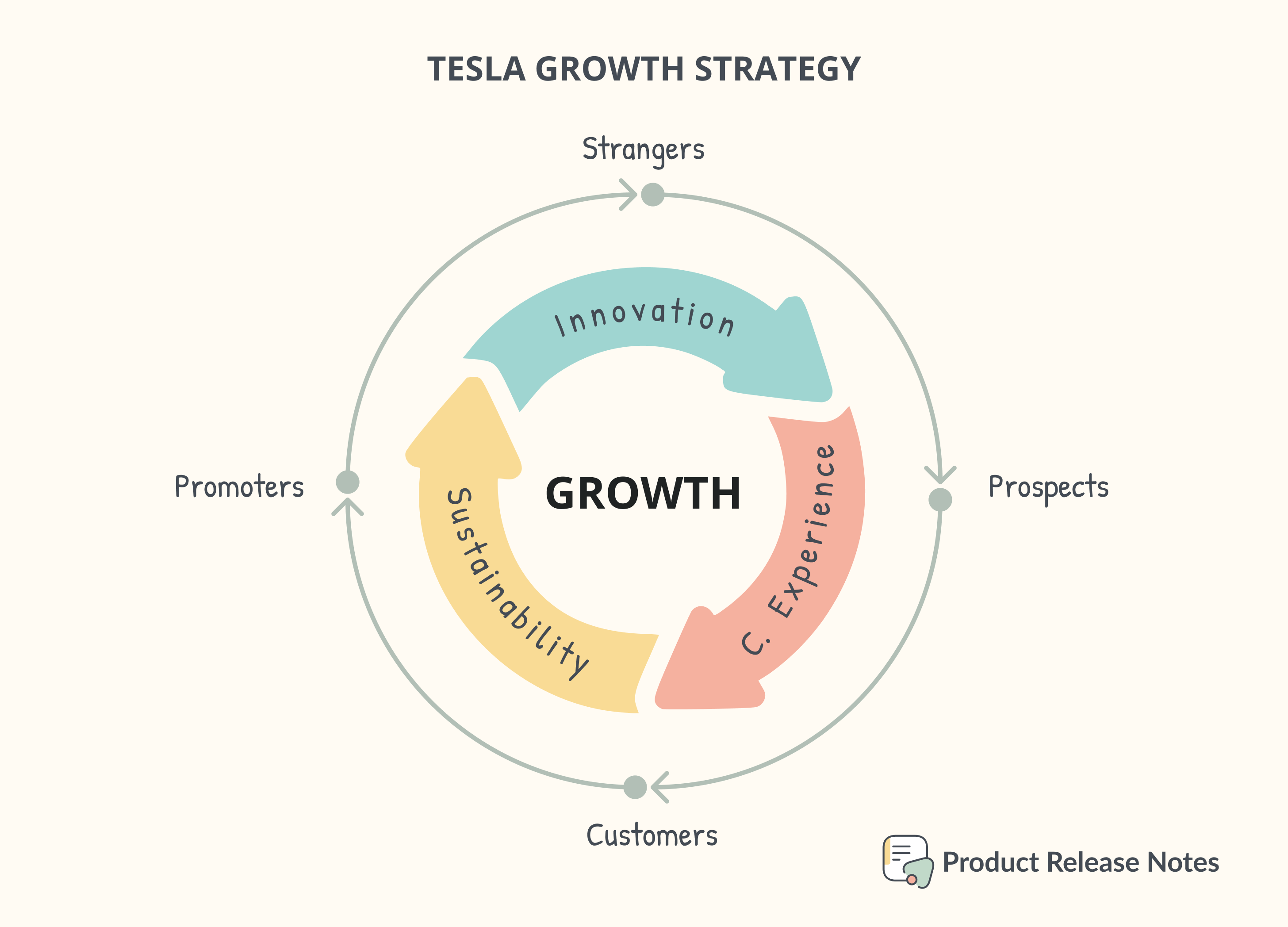 Tesla, the electric vehicle and clean energy company, has a flywheel strategy based on "Innovation," "Customer Experience," and "Sustainability." Tesla continually innovates in the electric vehicle space (Innovation), providing a superior driving experience and customer service (Customer Experience). Satisfied customers become brand advocates, sharing their positive experiences and driving further customer acquisition.