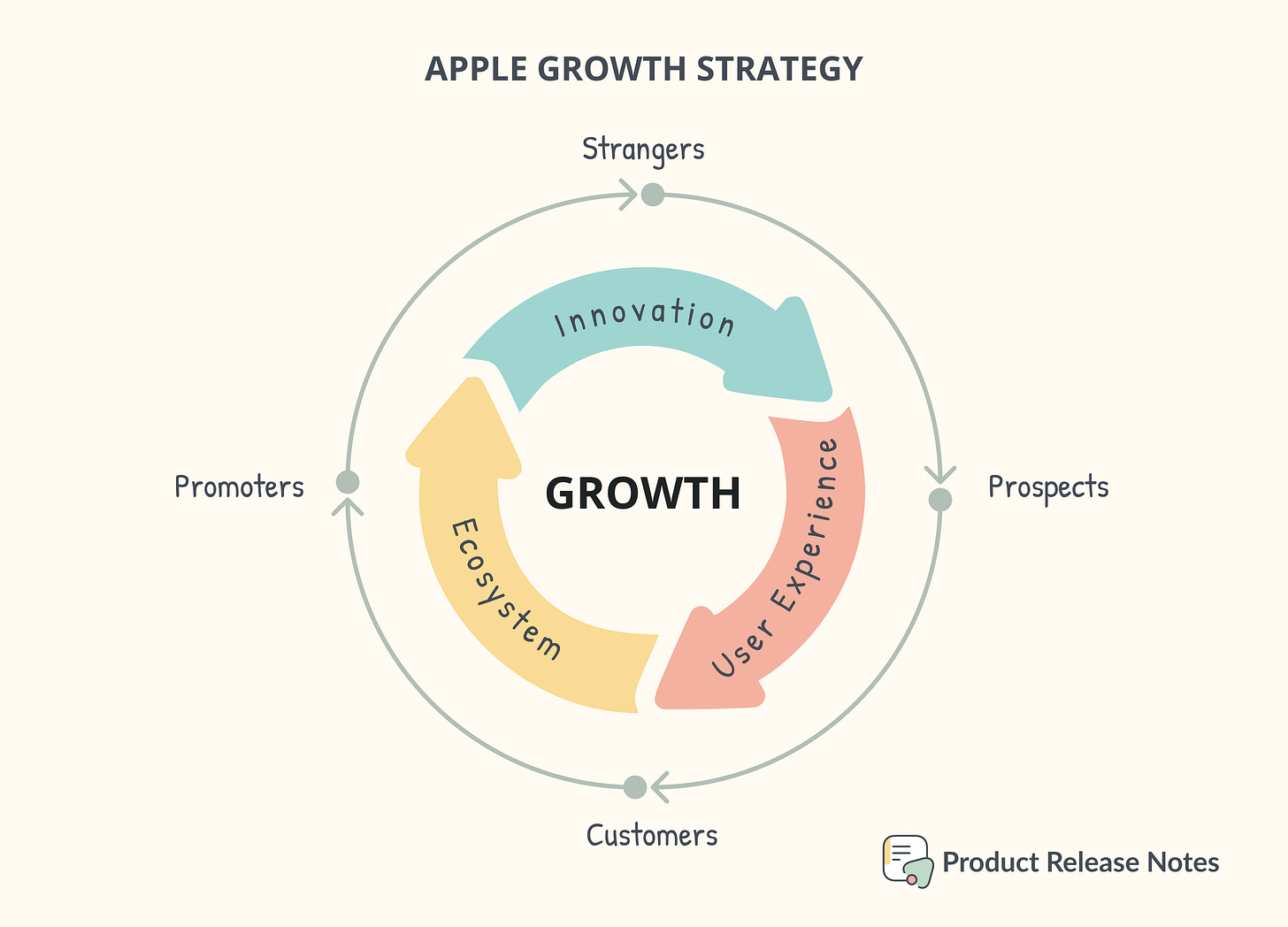 Apple, the multinational technology company, has a flywheel strategy based on "Innovative Products," "User Experience," and "Ecosystem." Apple focuses on designing innovative and user-friendly products that create a great user experience (User Experience). Satisfied customers often become loyal to Apple's ecosystem, purchasing other Apple products and services, leading to further customer retention and loyalty.